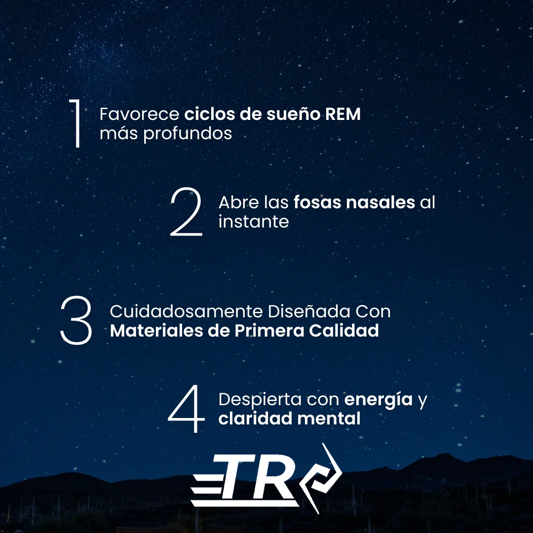 Las Tiras Nasales TR están diseñadas para abrir los pasajes nasales, aliviar la congestión y prevenir los ronquidos, asegurando un sueño reparador. Ayudan en: